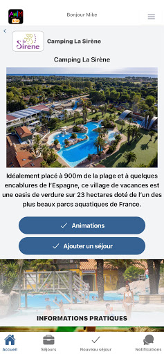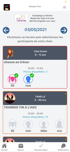 - Register your children for the mini-club (you will be automatically notified as soon as your children arrive or leave the mini-club, and much more ...)
