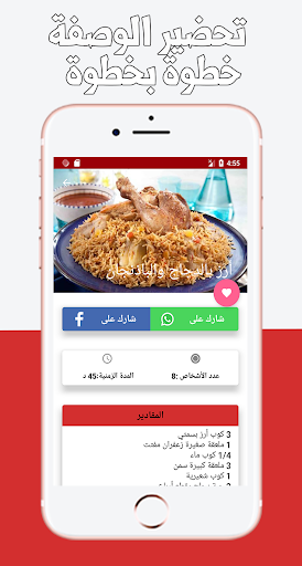 - شارك اي وصفة مع الاهل والاصدقاء عبر مواقع التواصل مثل Facebook وWhatsApp و Twitter…