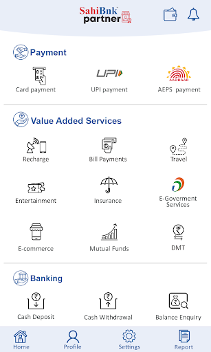 SahiBnk Partner is a Platform that enables every Indian to take full advantage of the financial services in the Sahi Way. SahiBnk Partner platform enables there partners to serve their end customers by fulfilling all the financial needs most efficiently like DMT, AePS, Recharge, Bill Payment, EMI Collection, LIC Premium, Account opening, Gold Loan, Kisan Credit Card, Tractor Loan, Personal Loan, Two-Wheeler Loan etc.