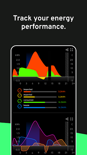 - Intuitive animated display showing import/export, generation, power diversion and consumption