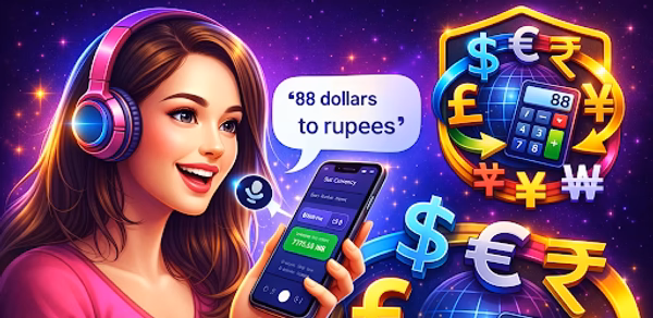 Say phrases like “88 dollars to rupees” or “500 yen in euros” and get instant results without typing.