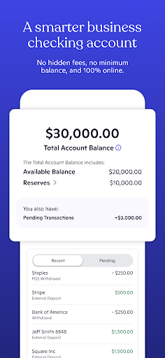 Novo is a fintech, not a bank. Banking services provided by Middlesex Federal Savings, F.A.; Member FDIC. Novo provides free banking tools to small businesses, all within the Novo app. You can link your existing accounts, control your debit card, pay your bills, process ACH transfers, deposit checks, categorize transactions, and separate your funds for savings in Reserves.