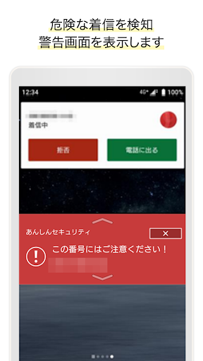 This app is a security app that protects your smartphone from various dangers, including virus protection with a security scan function and nuisance call protection that automatically detects and warns you of nuisance calls.