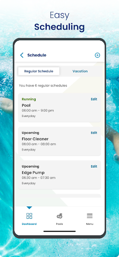 The Pentair Pool app and its range of connected products makes managing your pool easier than ever. Control your swimming pool system, monitor water chemistry, and access instant status updates from one easy-to-use dashboard on your smart device. Enjoy energy-efficient solutions and peace of mind with remote monitoring anytime, anywhere. With the Pentair Pool app, you can: