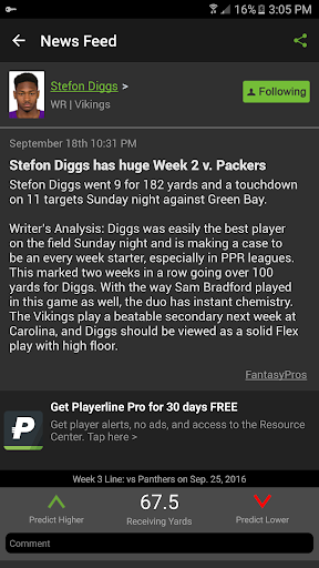 You can also make predictions on NFL player performance and climb the ranks as an expert among thousands of other Playerline users. Each prediction establishes a player ‘line’, so you get an overall idea of how thousands of people are expecting certain players to perform this NFL season.