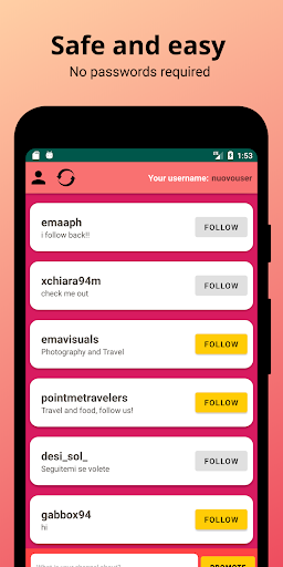 You can promote your account easily and quickly, discover new profiles, become popular and boost your account.