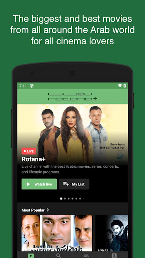 Rotana+ features live streaming channels and on-demand movies, concerts, and plays: