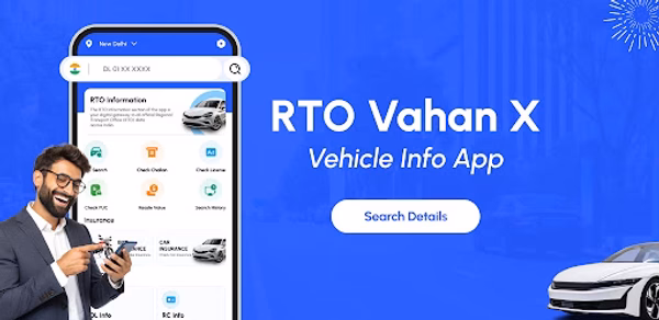 RTO Vahan X is your all-in-one vehicle information app to easily access RC details, driving license info, challans, PUC status, insurance, RTO state codes, traffic signs, and more. Get everything about your car or bike in one app.
