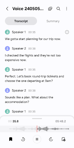 [Interview] Record yourself and another person’s voice using the microphones on the top and bottom of your phone. It shows the waveform for each voice, which you can play back separately.