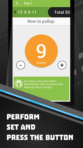 For example, if you can perform 10 pull-ups, choose a program that targets 9 to 11 repetitions. Remember to rest for 2 days after the initial test to allow for recovery. This program is designed to help you achieve a maximum of 50 pull-ups. While it requires effort, this goal is very achievable with our app, which simplifies your workout routine.
