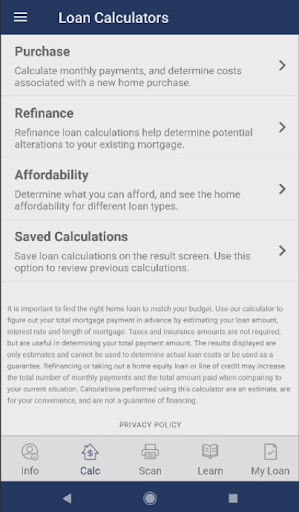 The calculations provided by the Highlands Residential Mortgage app are useful in giving you an idea of what homeownership or refinancing might mean for you. However, please be sure to contact your Highlands Residential Mortgage Loan Officer for a customized solution tailored to your specific financial situation, needs, and goals.