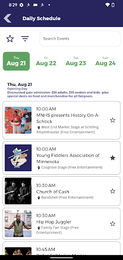 The new Official MN State Fair App features the popular Fair Finder, a tool to search for State Fair foods, specialty sips, shops and exhibits, plus daily schedules, maps and details on entertainment, rides & games, tickets, hours, getting to the fair and more. For more information, visit mnstatefair.org/general-info/mobile-app/.