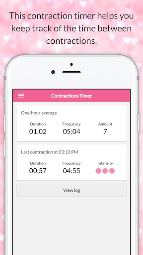 This contraction timer helps you keep track of the time between contractions. You can also indicate how much pain you experience during the contractions using a pain scale.