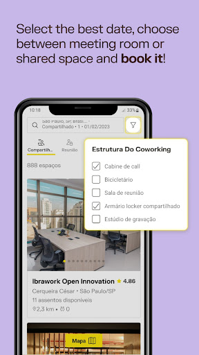 - Find meeting rooms, book by the hour and have more privacy to work with your team or meet your guests according to your needs