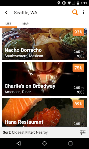 • Discover Restaurants - compare food choices by rating, distance, and cuisine