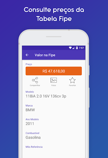 Download now, all Brazilian must have, is free and meets IPVA, fines, licensing, license plate, vehicle price (fipe), datasheet, calculation Ethanol or Gasoline and vehicle financing in a single application.