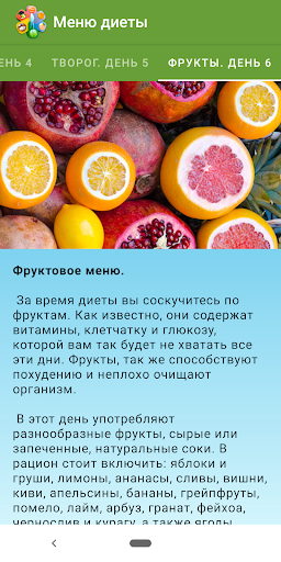 Smart alternation of products allows the body to get all the necessary materials for 6 days, to be well-fed and do not expose the body to stress. This helps to lose weight in a week by 3-5 kg. The purpose of this application - to help you in this, to become better, slimmer and more beautiful. And of course support you and your good mood. We are looking forward for a positive feedback and assistance in improving the application.