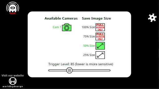 - Save snapshot images at 25% or 50% size (full size is available in the FULL version of GhostEye)