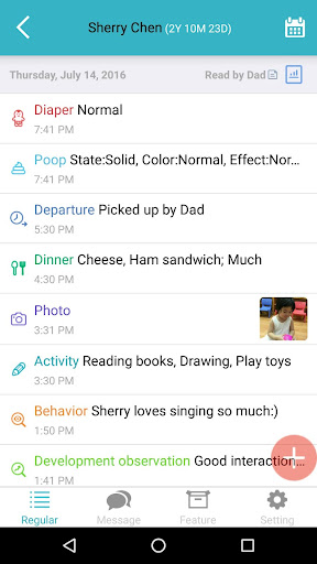 With the beautifully designed app, parents are able to see the updates made by staff in real time, or take notes while children are at home, such as diet, body temperature or even photos. A child can have multiple adults taking care of it and they all can share the information firsthand. (You may use itofoo independently in case you aren’t using any day care service. Once you decide to go for child care, historic data will be seamlessly connected with the center, continuing all the information stored in database.
