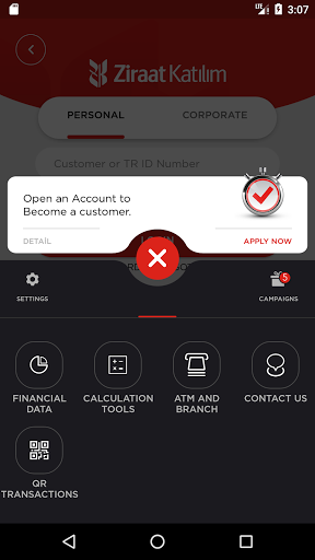 You may download the Katılım Mobile to your mobile phone free of charge and perform your transactions with your Ziraat Katılım customer number or TR ID number with your Internet Banking password.