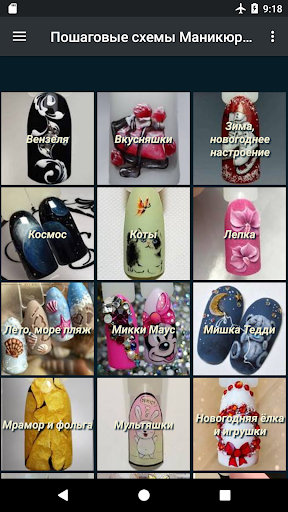 The annex presents the image with manicure ideas - step by step, step by step manicure. Ideas sorted by categories according to styles and types of nail polish.