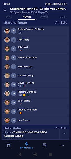 · enter and confirm lineups, team officials and kits