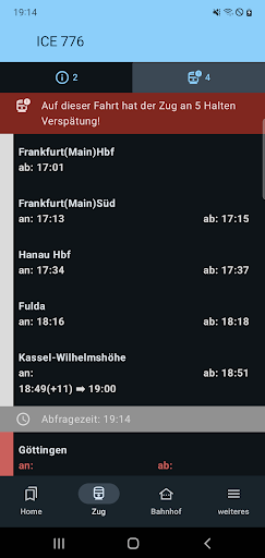 You can also save a stop query and see arrivals and departures at a stop. Other means of transport are also supported here (e.g. S-Bahn, bus, ferry...)