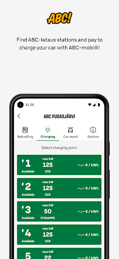 In the ABC-mobiili app, you can pay with a bank or credit card, S-Business card, and Apple Pay. ABC-mobiili is the most convenient co-driver for motorists, allowing you to handle your car’s refueling, charging, and washing with just a few taps. Additionally, you can easily order food for the whole carload and avoid queues when you arrive at the ABC service station. In the ABC-mobiili app, you can find the nearest ABC charging station, its available charging spots, the maximum available charging power, and the charging price. You can check the congestion status of your car wash spot via a handy queue camera and buy multiple car washes at a discount in advance. As a co-op member, you also earn Bonus points from ordering food, charging or washing your car and Tankkausbonus from refueling when you log in with your S-user account. Up-to-date information about ABC-mobiili services and usage instructions can be found at: https://www.abcasemat.fi/abc-mobiili