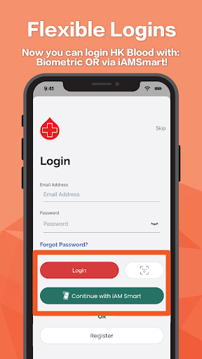 The New HK Blood App is enabled with more flexible login methods, providing user with better user experience.
