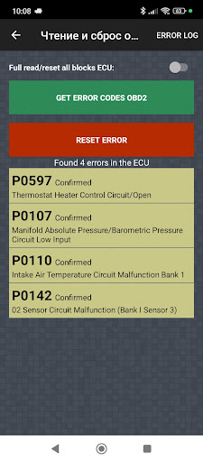 Additionally, the application can read and clear error codes, maintain a trip log, support custom sensor profiles, generate graphs, perform an acceleration test, offer a manual terminal, HUD mode, and a floating widget overlay on the screen.
