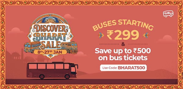 💰Discover Bharat Sale - Buses Starting ₹299 + Upto 50% OFF on Bus, Train, & Hotel