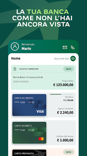 • Payments and Transactions: Make instant and ordinary Italian and Sepa transfers, account transfers, mobile phone and prepaid card top-ups. Pay postal bills, including via camera, and MAV/RAV.