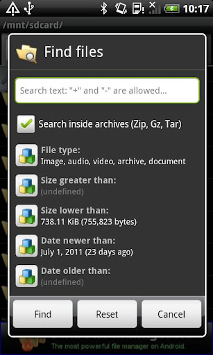 * Search files also inside Zip, GZ, Tar (advanced searching inside archive can take double time to complete)