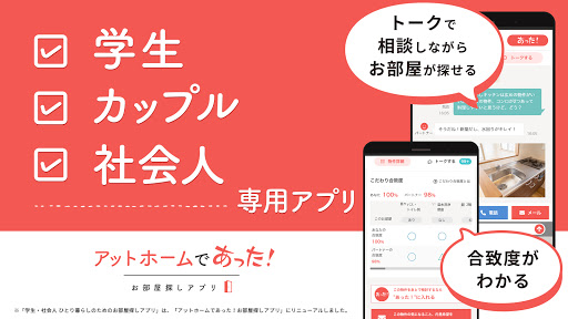 "Students/Workers Living Alone Room Search App" has been renewed to "At Home! Room Search App".