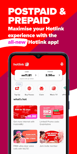 Whether for Hotlink Prepaid or Hotlink Postpaid, get everything you need now in one all-new & improved app.