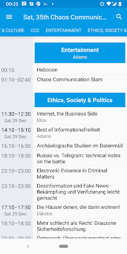 Browser for schedules of conferences like MCH2022, FOSDEM, LCA (linux.conf.au), CCC/37C3 and many more. (Supported formats: Pentabarf/Frab/Pretalx/xCal/iCal)