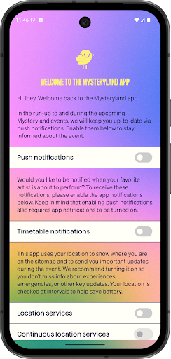 News and Updates: Get the latest news and updates about Mysteryland directly on your phone. Stay informed about any changes, exciting announcements, and special offers.