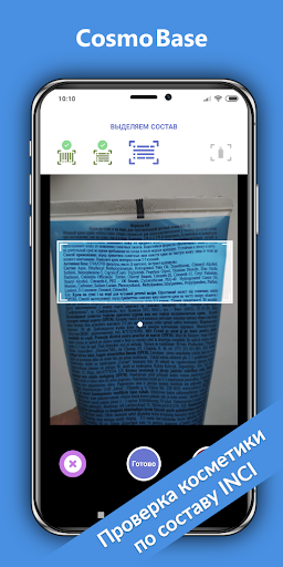 - Instant check and decoding of the composition of cosmetics from a photo.