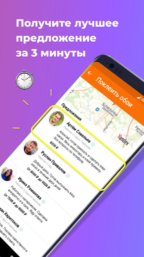 Using the application is very simple. See the questionnaire, select a specialist, leave a request. Within 15 minutes the master will send you offers with prices and other conditions. You can compare prices and choose the most suitable.