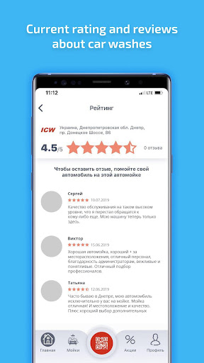 • Get a free car wash on the first registration of the application, on the balance of 50 bonuses