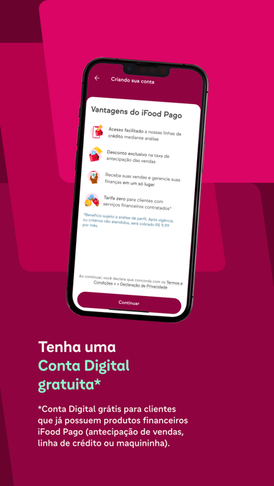 Baixe o app e abra a sua conta digital do iFood Pago.