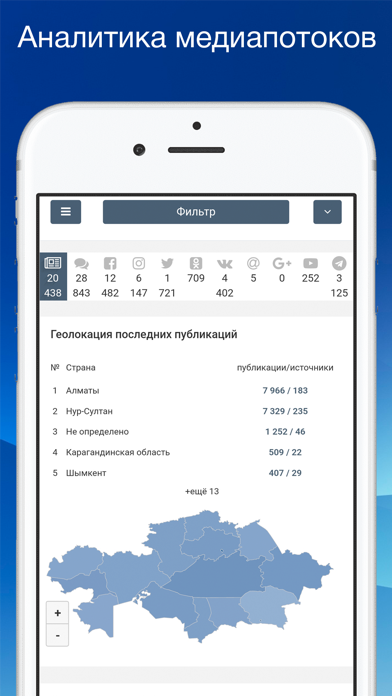 iMAS (Information Monitoring and Analysis System) - автоматизированная система мониторинга СМИ, социальных сетей, блогов, веб-ресурсов, форумов и мессенджеров с применением последних технологий для сбора и переработки информации. Система мониторит в режиме реального времени в формате 24/7/365 все СМИ Казахстана (4000+) и СМИ мира (30 500+) из 150 стран, а также социальные сети: Facebook, Vkontakte, Instagram, Twitter, Одноклассники, Youtube, Telegram, Tik Tok и другие.